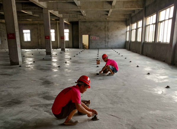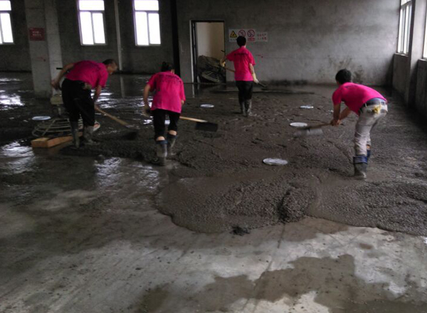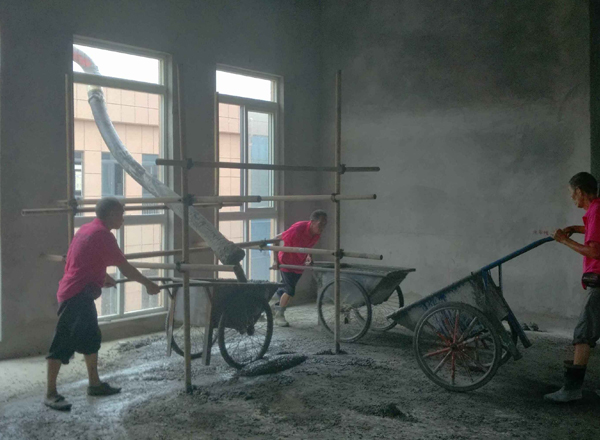 下圖為重慶華發(fā)施工人員在進(jìn)行二層地面現(xiàn)澆10CM混凝土加抗裂筋。