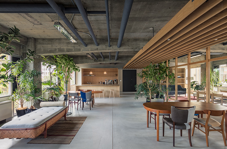 這是在東京,當地一家辦公室裝修公司為一家創意機構完成了一個工廠的辦公室。該辦公室裝修項目占地面積僅200多平方米,使公司員工能夠聚集并從事各種任務,同時實現自然的溝通。設計團隊拆除了該空間現有的天花板和地板飾面,以暴露這座有50年歷史的建筑的原混凝土結構。下面一起跟著華發小編來看看這個辦公室裝修效果圖吧。