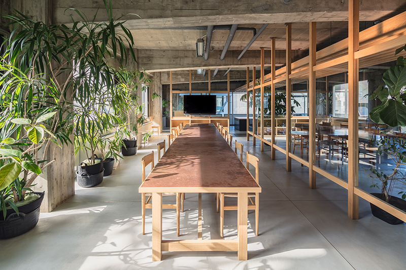 由于是工廠辦公室,辦公室裝修也保留了一些原始的樣子,裸露的水泥柱子就是典型的代表。