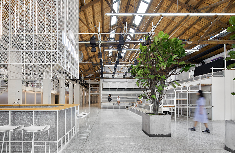 這個地點曾經(jīng)是倉庫以前的太空工廠。這個辦公室裝修保留原來的結(jié)構(gòu),只對天花板進行簡單的修繕和翻新-在重建廠區(qū)的過程中,還增加了天窗。他們讓在新建的第二層工作的人們享受陽光和天空的景色。