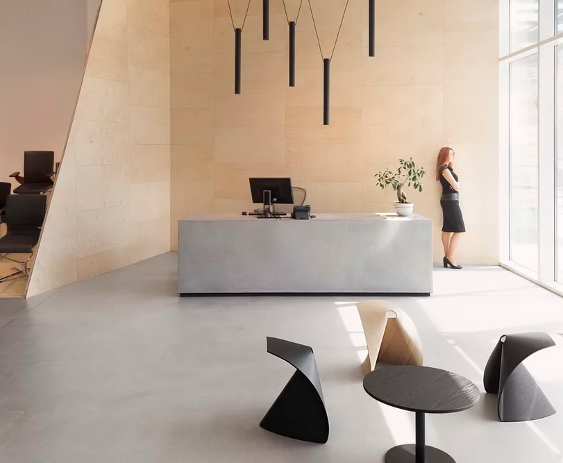 辦公室裝修傾斜的膠合板平臺(tái)允許椅子的高度安排,并通過這種方式暴露在每一個(gè)觀賞點(diǎn)。這個(gè)木制元素垂直向上,動(dòng)態(tài)地圍繞著接待區(qū),“引導(dǎo)”顧客從展廳的入口到經(jīng)理區(qū)。在集裝箱和膠合板平臺(tái)外,整個(gè)辦公室裝修空間的設(shè)計(jì)盡量減少使用材料-混凝土地板、白色墻壁、天花板和設(shè)施。這一設(shè)計(jì),結(jié)合航運(yùn)集裝箱,辦公室裝修創(chuàng)造了一個(gè)簡(jiǎn)單的工業(yè)外觀,強(qiáng)調(diào)復(fù)雜的模式和精確的細(xì)節(jié)所展示的家具。