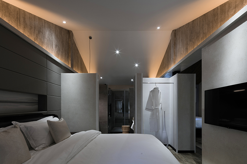 當(dāng)你走上臺(tái)階時(shí),蜿蜒的小徑將你帶到接待室。陰影與水墨山水畫相似,時(shí)間也在這樣的氣氛中緩緩下來。