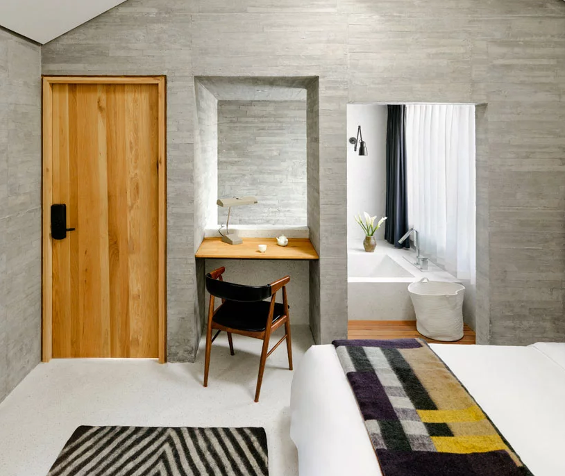 庭院的不規則方案創造了許多有趣的房間,沒有兩個相似。14的每個小休息都具有個性化的魅力,但都擁有固體和空虛的潮起潮落,模仿外面的庭院。建筑師解釋說,他們認為每個酒店房間都是不同的建筑物,因此根據他們的說法,酒店就像一個小村莊,其中一系列特別策略創造了獨特的用戶體驗。無論您何去酒店,充滿樂趣的空間都會讓您充滿想象力。一個房間永遠不僅僅是一個盒子,而是一個迷宮,下一個空間被部分顯露出來,給房間帶來開放和宏偉的感覺。
